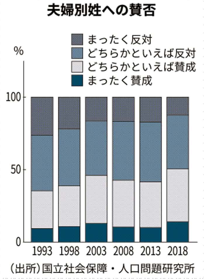 夫婦別姓に賛成 過半数に 家族観に変化 日本経済新聞