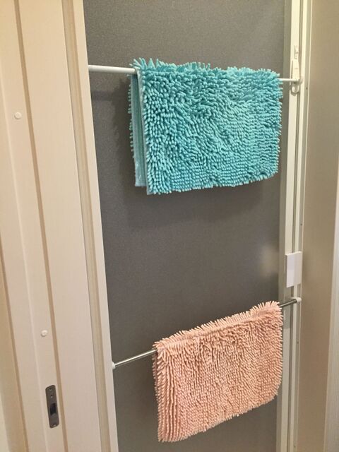セリアの突っ張り棒と3mのコマンドフックでバスマットが干せる 暮らしニスタ