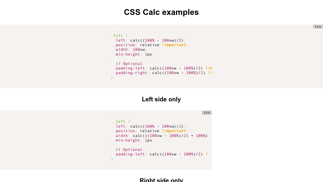Css Calc Examples