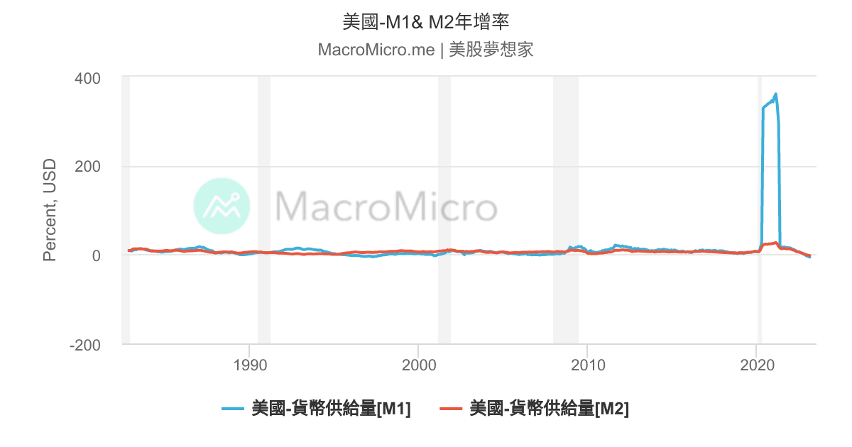 美國 M1 M2年增率 Macromicro 財經m平方