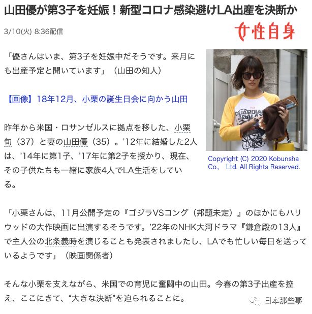 山田优将于下月生三胎因疫情决定在美待产 山田优 小栗旬 八卦 新浪娱乐 新浪网